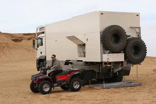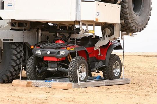 Alem do mais existe outra versão com suporte para moto no lugar dos pneus. Este caminhão é o maximo é o Top de linha mas existe um que é o supremo de todos 8X8 bota uma pressão.