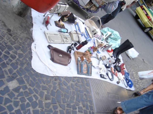 Também achamos interessante as calçadas das Ruas Catete e Rua da Glória (do bairro Catete e da Glória ), que levam ao Centro do RJ, onde haviam diversos camelôs que vendiam produtos usados. O Rodrigo mesmo comprou dois cd’s.