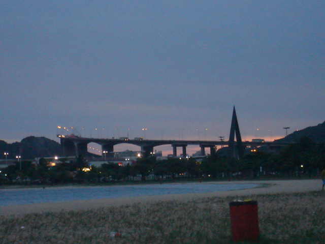 No dia seguinte, domingão, fomos à praia de Bervely Hills, em Vila Velha, com o Matheus e um casal de amigos dele. A praia era bacana, estava bem cheia, aproveitamos bastante o dia na praia! Abaixo a ponte que liga as cidade de Vitória e Vela Velha.