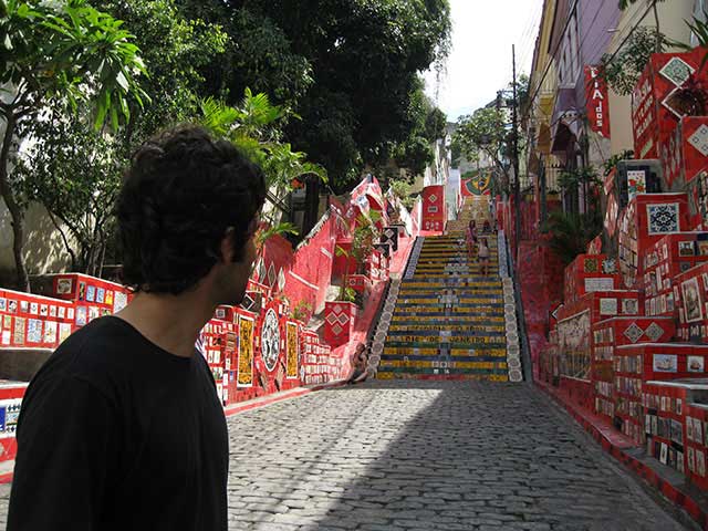 De lá seguimos para a Lapa, em direção a famosa escadaria Selarón obra do artista chileno Jorge Selarón. Já estivemos lá anteriormente e conhecíamos a história da escadaria, é muito bacana ver o trabalho do chileno, que esta em constante atividade.