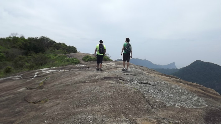 Localizada no Parque Nacional da Tijuca, a trilha tem cerca de 1250 metros de extensão e leva ao topo da Pedra Bonita, com 696 metros de altitude. Após conhecermos um pouco sobre o Parque e aguardar uma chuva fina que havia caído pouco antes, o Bruno nos orientou sobre a Trilha, como a segurança, previsão de chegada à Pedra Bonita, etc.