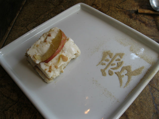 Para sobremesa, comi gelatti de frutas da estação com castanha do Brasil e o Rodrigo lasanha doce de maça com creme de limão siciliano, também uma opção vegan. As sobremesas são suaves e bem gostosas.