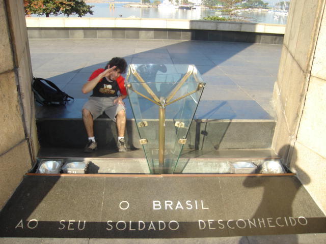 Batendo continência no Monumento Nacional aos Mortos da Segunda Guerra Mundial na viagem de 2006 ao Rio de Janeiro. Ah, uma horrível sombra da Raquel na foto.