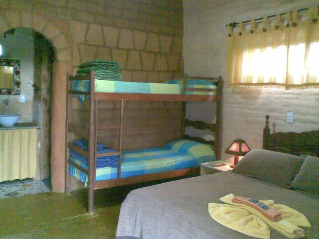 Cada chalé é decorado em um estilo, escolha o seu! Optamos pelo chalé ecológico, achamos a ideia bem diferente e interessante. Ele foi feito a partir de padrões de bioconstrução, sua estrutura é de superadobe e abode (uma mistura que utiliza o barro), o chuveiro possui aquecimento solar, as madeiras são de eucalipto reflorestado, na pintura utilizaram tinta à base de terra, etc. Adorei a experiência de ficar num lugar assim, tudo é ecologicamente pensado e realizado, muito bacana!