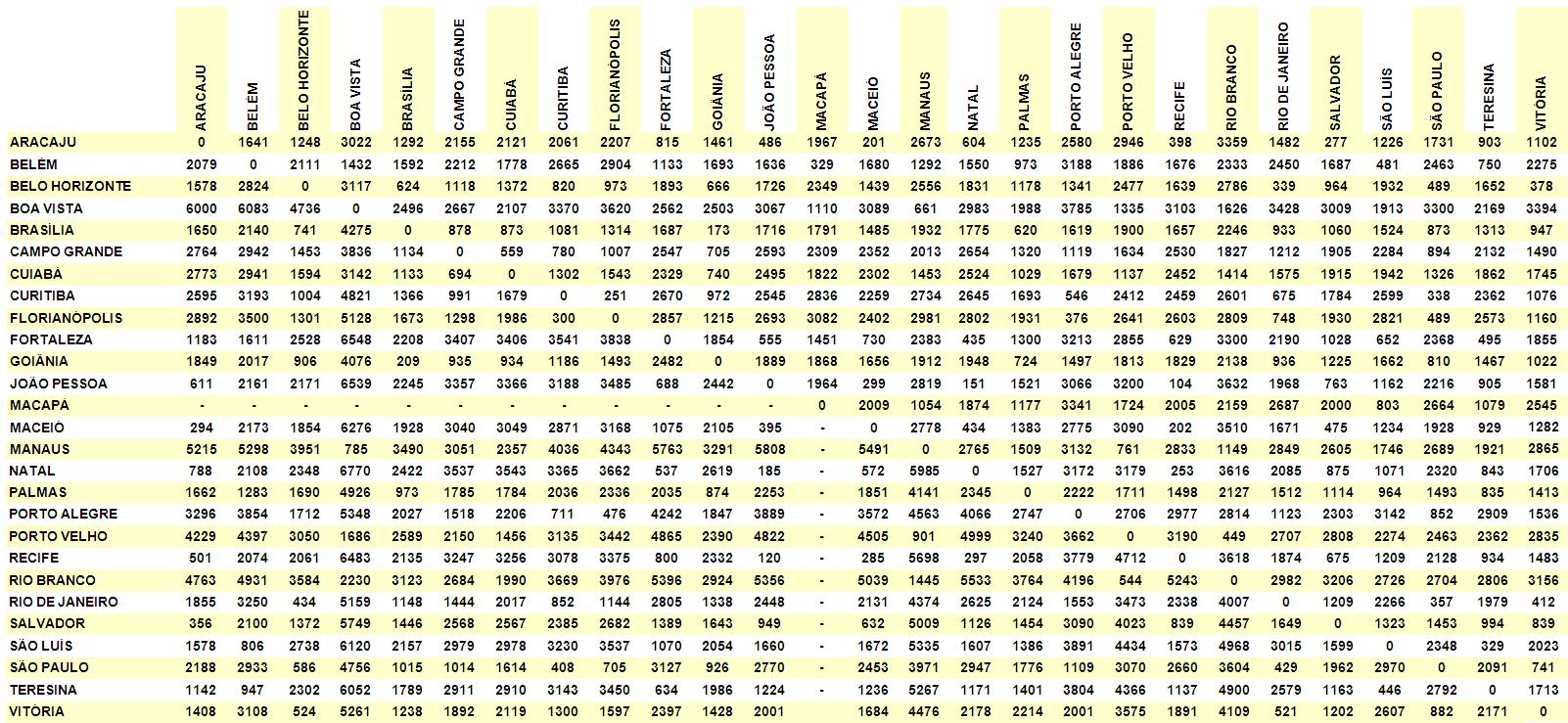 Distância entre as capitais brasileiras