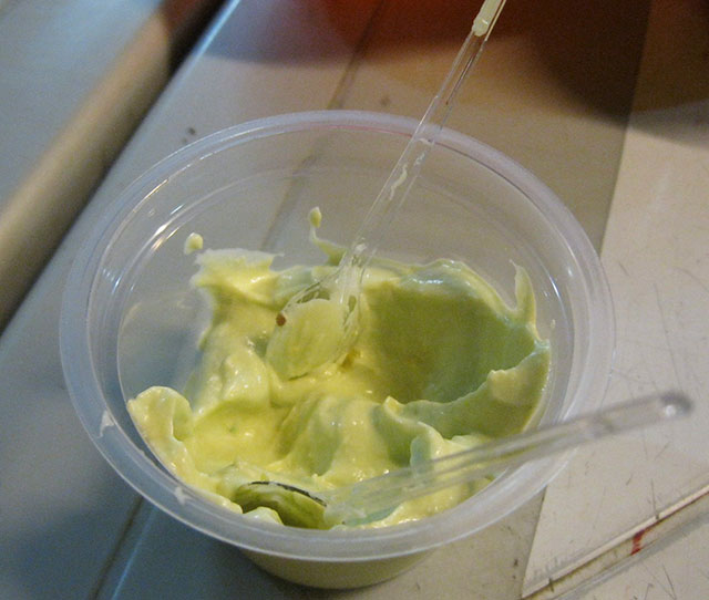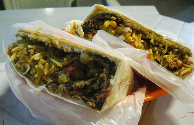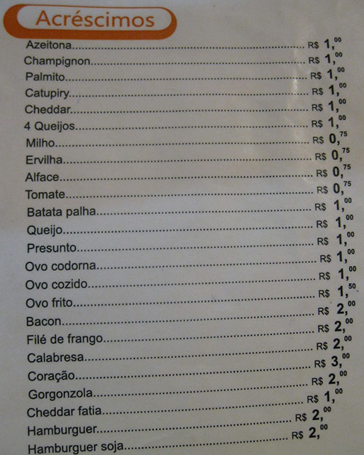Eu, pedi o Dog Ovolactovegetariano: molho strogonoff, queijo, milho, ervilha, salsa, ovo picado, catchup, mostarda, batata palha e hambúrguer de soja lembrando que no lugar do hambúrguer de soja pode-se optar por uma ou duas linguiças de soja. A Raquelzinha foi de X – Egg-tariano: (hambúrguer de soja, queijo, ovo, alface, milho, ervilha, batata palha).
