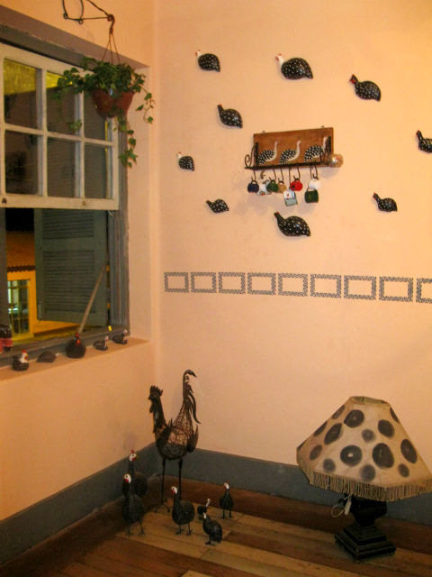 O espaço do restaurante é tão gostoso que não queríamos ir embora. A vontade que temos é de ficar passeando pelo local e observando os objetos antigos e curiosos, tem malas antigas, máquina fotográfica pré-históricas, canequinhas de casa de vó, abajur divertido, galinhas de todos os tipos, panelas de pedra e de ferro, acordeon, telefones da época da bisavó, uma sala com diversas imagens coladas na parede e muito mais, é preciso ir pra conferir!