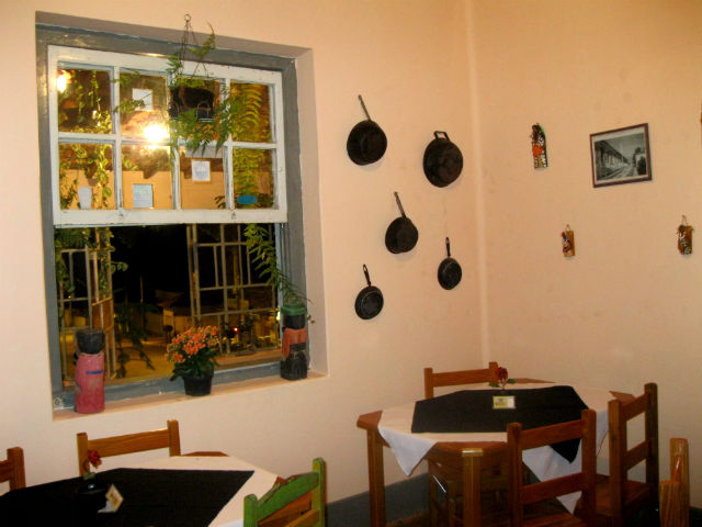 Durante a noite, em Carrancas, fomos ao Massaroca Bistrô para jantarmos. O Massaroca é um restaurante tradicional, que funcionou durante anos em São Thomé das Letras, mas mudou-se para Carrancas. A Sara, uma funcionária da casa há anos, nos recebeu e atendeu, muito bem!