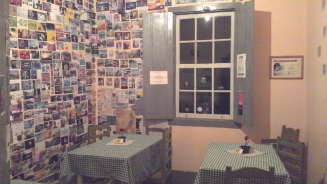 Um detalhe que chamou nossa atenção no Massaroca Bistrô é a decoração: rústica, com diversos artigos antigos e curiosos. O próprio casarão, onde funciona o restaurante já é interessante e aconchegante, com vários ambientes independentes, cada um com uma decoração própria e janelas grandes. Escolhemos uma “salinha” para sentarmos, mas passeamos por todos os ambientes da casa, só não fomos no quintal, porque além de ser noite, estava bem friozinho, então ficava fechado.