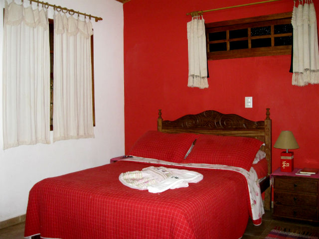 Dessa vez, ficamos hospedados no chalé oriental, da primeira foi no chalé ecológico, confira, ainda tem 4 chalés em estilos e decorações diferentes para experimentarmos! Risos. Afinal a pousada possui 6 chalés e 2 apartamentos. Nosso chalé era muito bacana, tudo na linha oriental, desde a colcha da cama, a pintura do quarto, abajur, quadro, leque na parede, até as toalhas de banho etc.