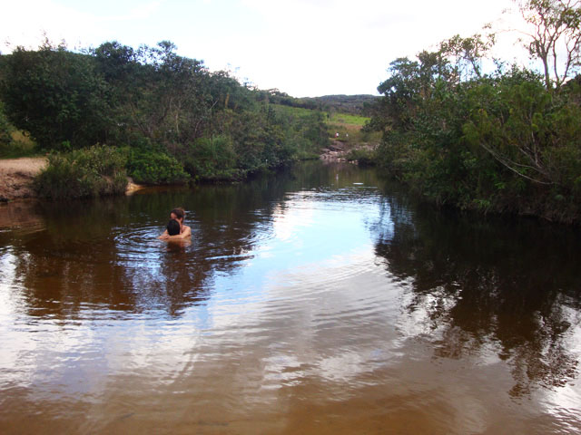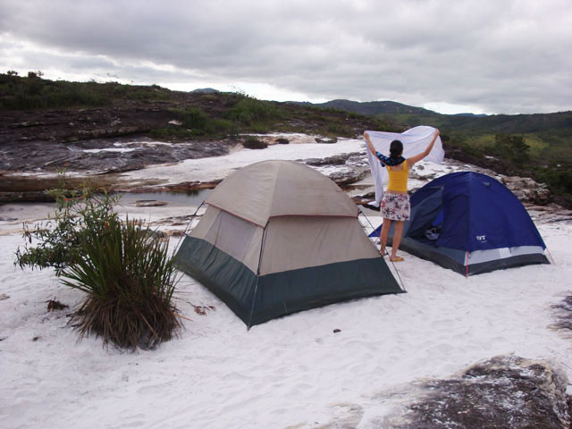 Por ser Carnaval, Milho Verde estava cheio de pessoas e os campings lotados. Mas o que queríamos mesmo, era fazer um acampamento mais reservado e mais selvagem. Pegamos um trilha para uma cachoeira mais afastada e lá armamos as barracas.