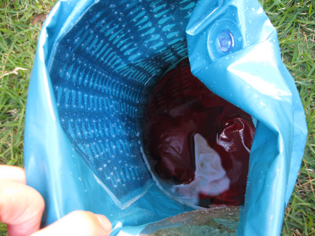 Lavei uma camisa suja, inclusive, após ter pedalado por cerca de uma hora e meia e ter suado bastante, a camisa ficou bem limpa. Mas talvez para tirar uma mancha específica seja necessário esfregar à mão. A Wash Bag é bem leve e fácil de se transportar e ocupa pouquíssimo espaço. Além do mais, pode ser usada como um “balde dobrável” para pegar água, lavar os pratos em um acampamento, lavar os pés e também para proteção de objetos contra água de chuva em dias chuvosos, em uma trilha ou acampamento, por exemplo.