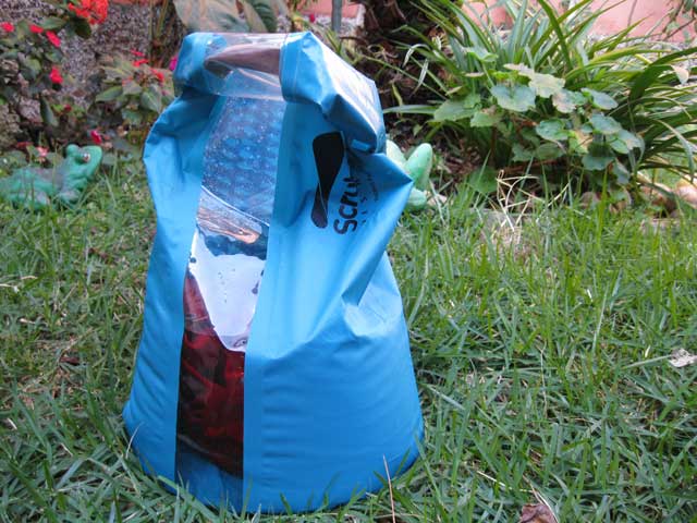 Recebemos da empresa australiana Scrubba a Scrubba Wash Bag (máquina de lavar roupa portátil), uma bolsa onde se coloca as peças de roupas e sabão, basta fechar e esfregar. A criação do equipamento é bem interessante e pode ser bastante útil para quem faz trilhas, trekking, expedições, viagem de mochilão ou qualquer outra atividade que exige do viajante ficar dias “na estrada”. Eu e a Raquel, por exemplo, em nossas longas viagens já economizamos muito lavando nossas roupas na casa de membros do CouchSurfing, pois deixar de gastar com lavanderia é uma grande economia.
