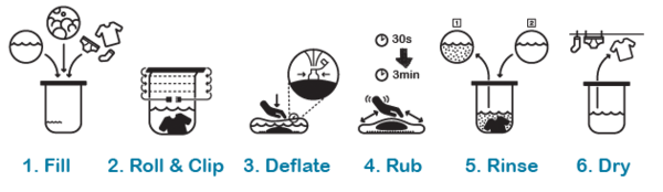 Fiz essa experiência que consiste em encher o Wash Bag com água e sabão líquido e esfregar entre trinta segundos e três minutos. Na sequência é só enxaguar as peças e colocar as roupas para secar, bem simples, sua utilização não tem nenhum mistério.