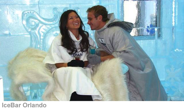 IceBar Orlando que fica na 8967 International Drive, Orlando, FL 32819, USA, certamente é uma atração a parte além de ótimos drinks, boa musica e gente bonita, possui uma exposição de esculturas de gelo, se prepara para entrar nesta fria!