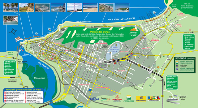 O mapa não era dos melhores, era pequeno e só tinha uma geral de alguns pontos dos bairros Centro, Petrópolis, Tirol, Capim Macio, Ponta Negra e Via Costeira. Na minha opinião, para conhecer o centro de qualquer cidade é muito melhor ir por conta própria, pois se tem mais liberdade, já um passeio para Maracajaú, por exemplo, talvez compense fechar com alguma agência.