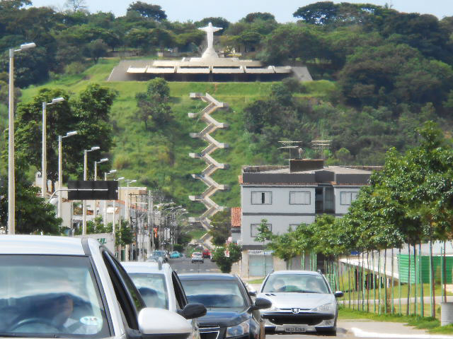 Como não podíamos conhecer os espaços, bastou nos ficar contemplando o visual da escadaria em ziguezague dos mais de 200 degraus que levam ao alto do morro, aos pés do Cristo do Parque de Lazer José de Pinho. Quando íamos em direção ao parque para conhecê-lo, tivemos a triste notícia que estava fechado para reforma.