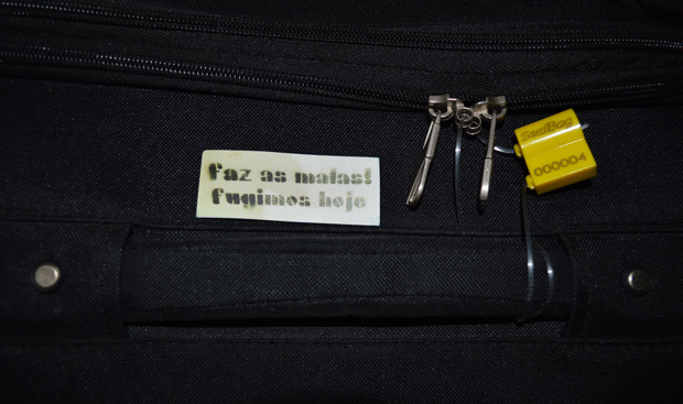 Utilizamos alguns lacres do kit que recebemos em nossa viagem para Natal e na última viagem à Foz do Iguaçu no mês passado. A utilização é bem fácil. Apenas é preciso enfiar o fio de nylon pelos cursores dos zíper, aqueles buraquinhos do zíper que a maioria das malas têm, e envolver o fio em algum ponto fixo. No nosso caso, demos uma volta pela a alça da mala. Por fim, basta inserir o nylon na extremidade de volta do lacre. Pronto, está lacrado o seu zíper!