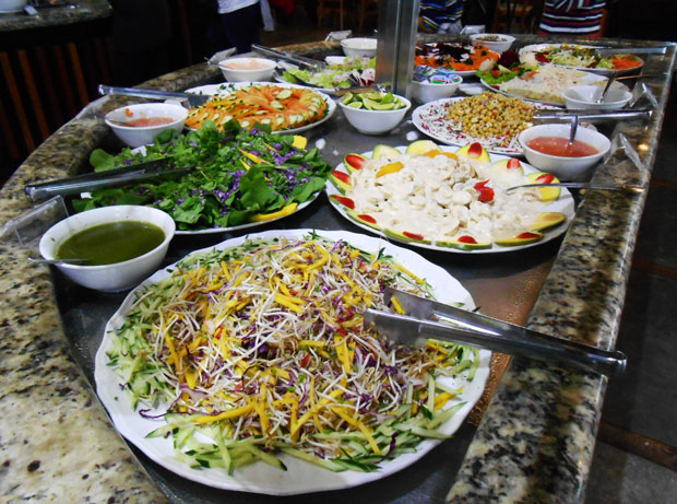 Apesar do restaurante ser especializado em pratos típicos, como feijoada, tutu de feijão entre outros, ficamos muito satisfeitos, mesmo sendo vegetarianos. São várias as opões de pratos quentes e sobremesas. Para se ter uma noção, o buffet de saladas conta com 17 tipos diferentes.
