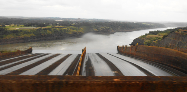 A visita segue por longas estradas, jardins até ao lago de Itaipu passando por gigantescas construções pela barragem.