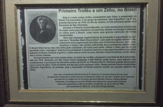 Para ilustrar essas histórias, há em Uberaba o Museu do Zebu, localizado no Parque Fernando Costa, onde ocorre a Expozebu, tradicional festa do boi zebu. No museu está um grande acervo de fotos e objetos que mostram a bravura dos pioneiros, as dificuldades enfrentadas para chegar a Índia e trazer os animais para Brasil.