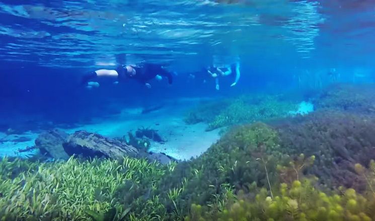 O guia acompanha o grupo em um pequeno barco a remo. E caso alguém precise parar a flutuação, basta virar de frente e permanecer com as pernas dobradas, como na posição de “sentado”, sem colocar os pés no chão para preservação da vida aquática e para não atrapalhar a visão dos outros do grupo, pois se encosta no chão, a areia do fundo sobe e a água fica um pouco turva por alguns instantes.