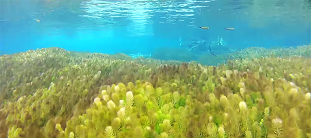 Primeiro ponto de parada da trilha é uma região composta de várias nascentes. É possível observar a água brotando da terra, é fantástico. Essa mesma água encontra com o rio que vamos realizar a flutuação. É show!