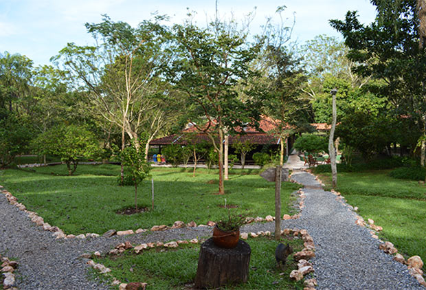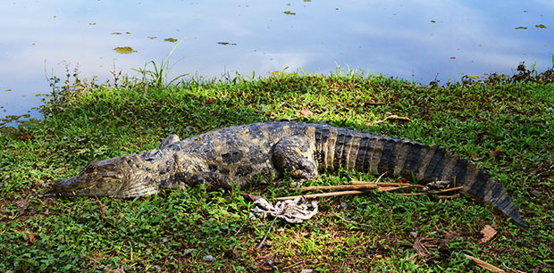 Passear pela fazenda, conhecer a casa e seus arredores é algo que deve-se dedicar uns bons minutos. Bem ao lado da sede, por exemplo, é possível ver alguns animais que lá habitam. Aliás, no lago da fazenda moram alguns jacarés, isso mesmo, jacarés! Tivemos a oportunidade de ver um bem próximo a nós na margem do lago. Ah, lógico, há uma cerca que os separam.