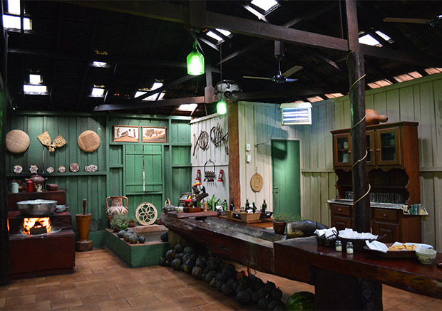 Já dentro da sede estão expostos vários objetos e utensílios domésticos antigos que hoje fazem parte da decoração e da memória do lugar. A cozinha é um dos locais que nos faz sentir em outra época…