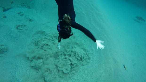 Durante a flutuação é feita uma parada para contemplar um dos atrativos do passeio, que uns chamam de vulcão e outros de cratera. Independente da denominação, o atrativo é uma grande nascente onde a areia borbulha. Para os mais aventureiros, o atrativo não só serve para admirar, mas para tentar alcançá-lo e encostar nas areias borbulhando… Após alguns mergulhos eu e a Raquel conseguimos tocá-lo. Haja esforço, pois com a roupa de neoprene é preciso fazer força dobrada, uma vez que ela te impulsiona para cima. É muito divertido, fui umas três vezes… hehe
