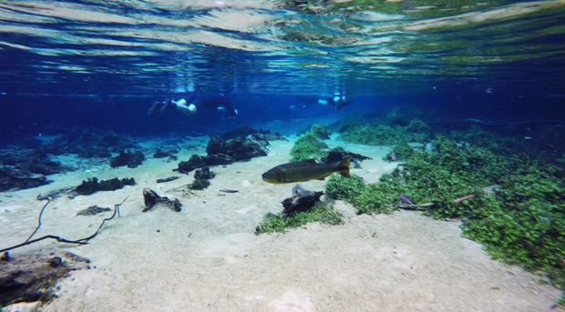 É magnífico a sensação de estar tão perto de peixes como piraputangas, pacus, pintados, dourados entre outros. São peixes grandes, às vezes em cardumes, às vezes solitário passeando bem perto de você.