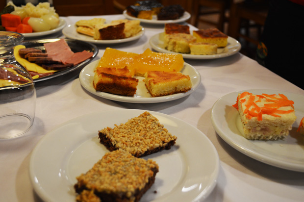 Bolos: Chocolate, cenoura, amendoim, limão, rocambole, cuca, waffler, laranja, ricota e apfelstrudel.