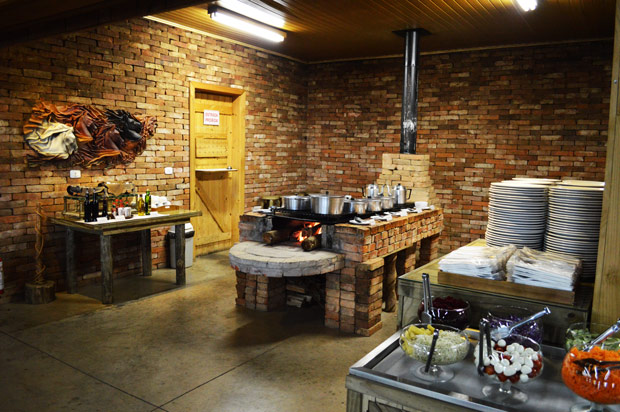 Com capacidade para 400 pessoas que faz o resgate das típicas receitas gaúchas, o Restaurante Parque Gaúcho serve dois tipos de churrasco: o gaúcho e os assados na parilla. Há também o buffet preparado no fogão à lenha com uma variedade enorme como feijão tropeiro, arroz-de-china-pobre, arroz-carreteiro, puchero, moranga caramelada entre outros pratos. Aliás, para nós que somos vegetarianos foi ótimo, muita opção sem carne. Para a sobremesa tinha sorvete de fabricação própria nos sabores de doce-de-leite, erva-mate, butiá e milho-verde.