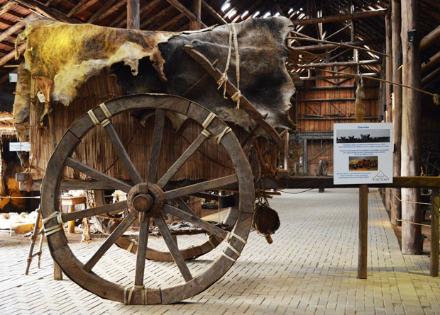 No memorial somos conduzidos por um guia tipicamente vestido de bombacha, com lenço no pescoço, boina e alpercatas. Ele nos leva a uma “viagem ao tempo”, desde a época em que o couro dos rebanhos servia para tudo: era o teto de carroças e casebres, roupa para o corpo e material para instrumentos domésticos.