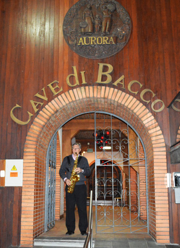 A visitação chega ao final na “Cave di Bacco”, local onde é feita a degustação dos diversos vinhos, sucos e espumantes. Não sei se acontece em todas as visitações, mas, no dia em que fomos, um saxofonista tocou durante a degustação. Depois pode-se adquirir os produtos e acessórios da marca na loja da vinícola.