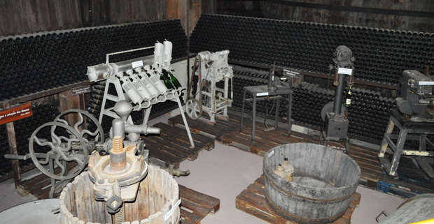 O guia nos explica todo o processo utilizado na produção, aliás, a Vinícola Garibaldi utiliza 3 métodos; o tradicional, o charmat e o asti, característico para a produção do espumante feito à base de uvas moscatel. Ainda durante a visita, passamos por um espaço onde estão expostas máquinas e outros instrumentos utilizados durante a produção dos primeiros vinhos.