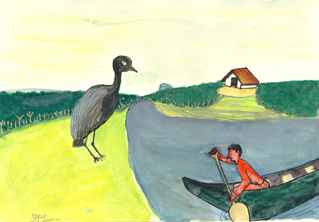 Subindo o rio Traíra, Wasu chegou à Cachoeira Jacamim. Era a aldeia dos jacamins, a Casa dos Pássaros. Ali havia mulheres, mas nenhuma queria ficar com ele.