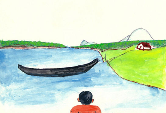 Ele ficou triste, porque já estava quase chegando perto do seu povoado, sem conseguir mulher. Passando daquelas cachoeiras, encontrou um porto. Ali estava uma canoa.