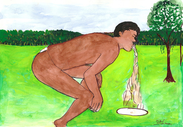 — Vou defecar ainda! — Diabo sem Cu viu que Wasu defecava diferente. Curioso, quis saber como ele fazia para defecar, assim.