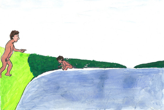 Um dia, os dois combinaram de irem se banhar. Chegando ao porto, Wasu disse: